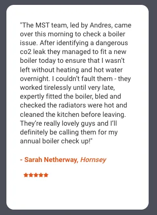 If there's an emergency, we're super quick, arriving within an hour. Even for regular questions, we get back to you in just 2 hours. With us, you're not just getting a new boiler; you're getting peace of mind and fast, reliable service